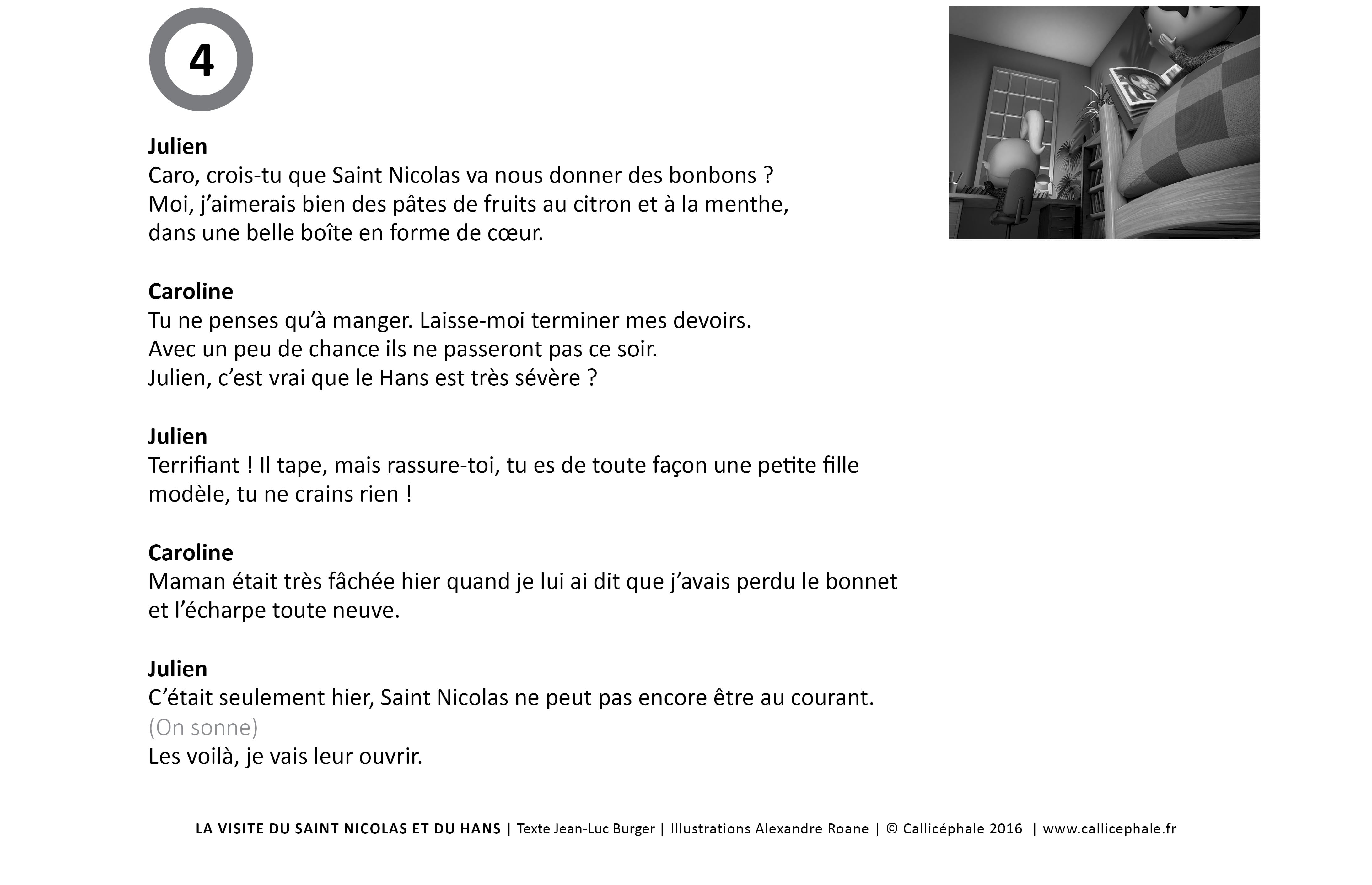 À la tombée de la nuit, la veille du six décembre, le bon Saint-Nicolas et son inquiétant compagnon, Le Hans, font leur tournée dans un village d’Alsace.